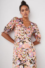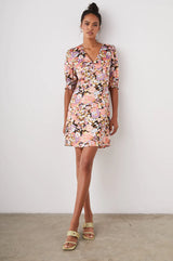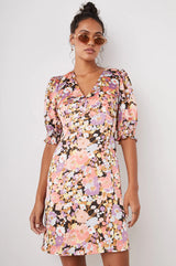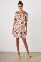 A spring wardrobe staple, the Roma Dress is versatile enough to look daytime-casual or nighttime-ready. The flirty, mini dress features a v-neckline and romantic puff sleeves with a smocked cuff. It's made from soft lightweight crepe with a beautiful, multi-colored floral print.
