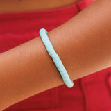 PUT TOGETHER THE PRETTIEST STACK EVER WITH OUR PASTEL DISC STRETCH BRACELET. AVAILABLE IN THREE LOVELY SHADES—PASTEL BLUE, BABY PINK AND FRESH WHITE—THESE EASY-ON-AND-OFF STYLES FEATURE VINYL DISC BEADS, PLUS A TRIO OF SILVER SPACER BEADS FOR AN EXTRA ACCENT.