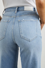 Your must-have straight leg. The Topanga Crop is a high-waisted, vintage-inspired straight featuring a button fly and a cropped inseam. Washed in a light vintage with an asymmetrical hem, these jeans will be your go-to.
