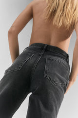 Make your other jeans jealous. The Topanga in Graphite is a high waisted vintage inspired straight with an exposed button fly. Our Graphite wash has a lived-in look and feel.