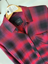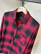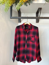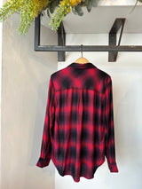 The classic RAILS long sleeve plaid buttondown shirt. Made from our signature, ultra soft rayon fabric featuring a loose twill weave. This style is a year-round comfort classic with rose red, deep teal, black, coral, and light grey plaid on a marine navy base. Single layer with one chest pocket.